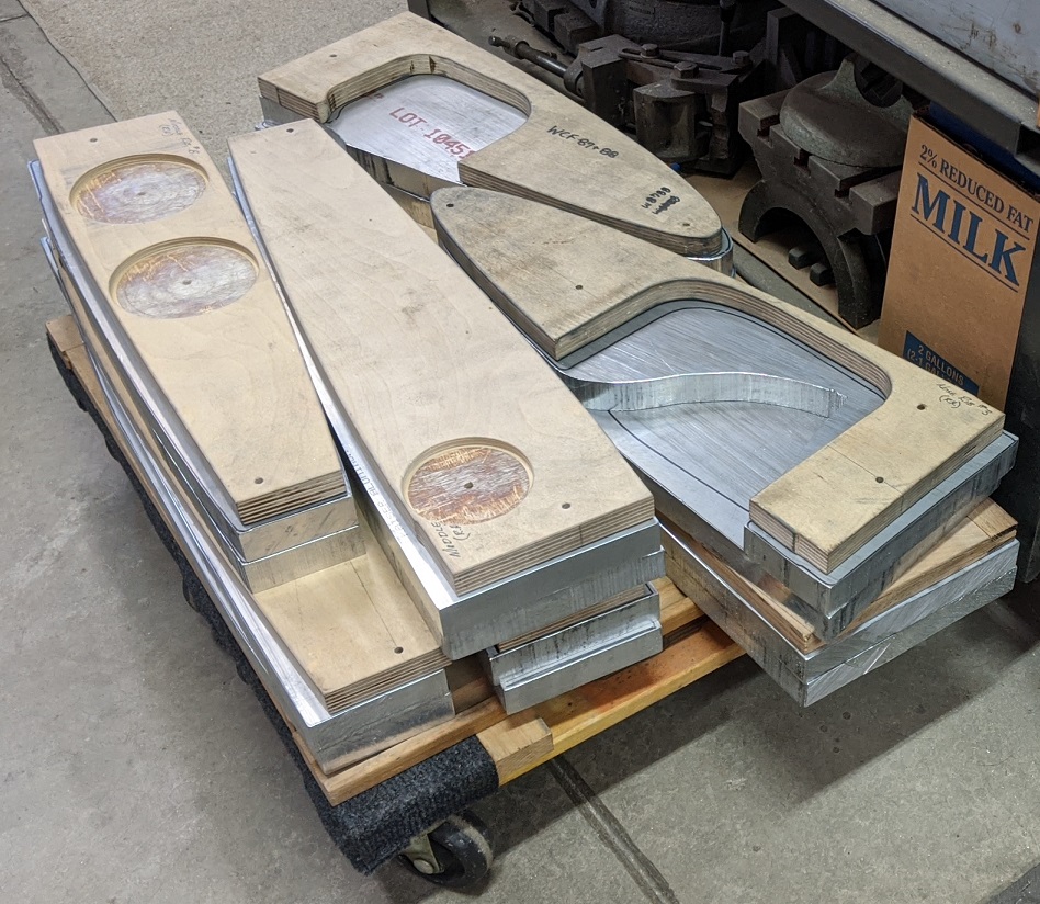 Here is the current stack of ruff cut dies waiting to get machined so that they can make Prowler parts: